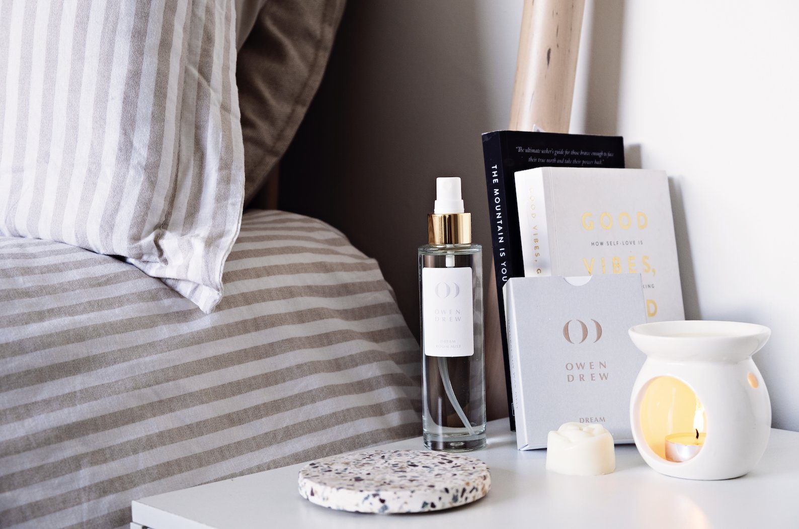 Buyers should immediately imagine peaceful nights in this space. Opt for soft vanilla, linen, or lavender to create a calm, serene retreat. A light diffuser or reed stick can help maintain a consistent but subtle fragrance.